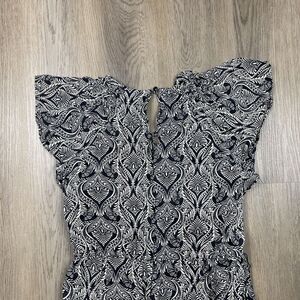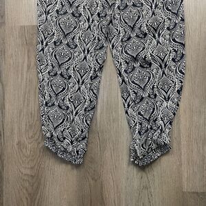 By Anthropologie Jumpsuit Womens 10 Black White Paisley Ruffle Neck Jogger Cuff
