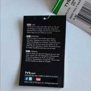 See photo of sizing chart (last photo), if unfamiliar with Tyr fit. You can also find additional sizing details on the Tyr site.