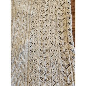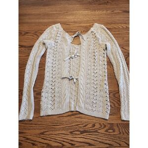 Free People Cable Knit Sweater Womens Size Large Beige Open Back Bow Lightweight