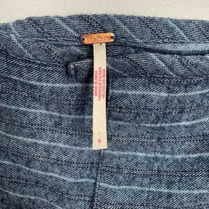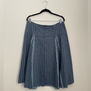 Free People - A-Line Amelia Midi Skirt Size 8 Blue Pinstripe