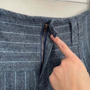 Adorable A-line midi skirt from Free People in a classic blue pinstripe pattern. A little classic, a little edgy, this head-turning skirt deserves a spot in your wardrobe. Toughened up with moto boots or collegiate-inspired with socks and loafers, this style has endless ways to wear. In brand new/excellent condition; no pilling, holes, or stains.