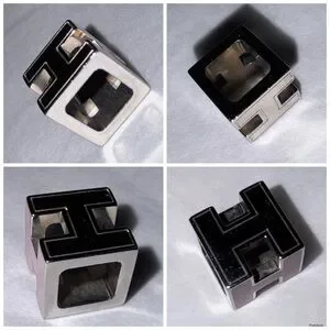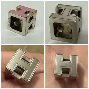 * H pink sides of block looks good. Minor wear/discoloration. The silver H sides have some scratching/wear, but overall still look good. See photos for up close details. The most discoloration is within the inside. That’s obviously not seen when using. See photos.