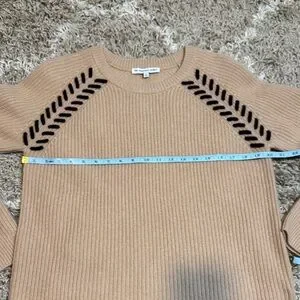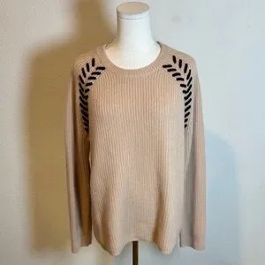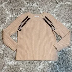 The Cashmere Project Tan Crew Neck Sweater with Black Stitch Accents size Large