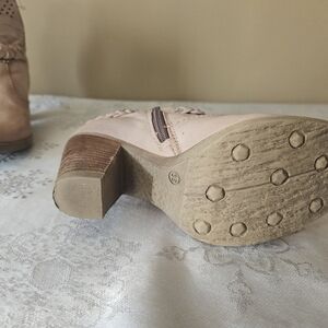 Chic ankle boots with perforated design. Braided strap detail. Elegant block heel. MJUS Women's leather ankle boots, sz 36, great condition couple scuffs on toes should come off with cleaner as shown in pics, bundle and save