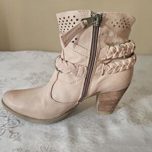 MJUS Ankle Boots Women's Perforated Leather Braided - Blush Sz 36