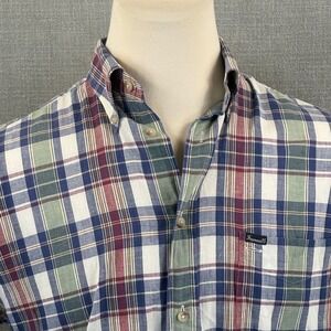 Faconnable Mens Medium Madras Plaid Short Sleeve Button Down Shirt 100% Cotton