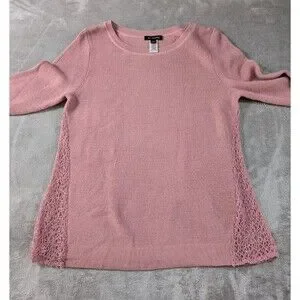 H by Halston Sweater Women’s XS Pink Wool Blend Lace Lightweight