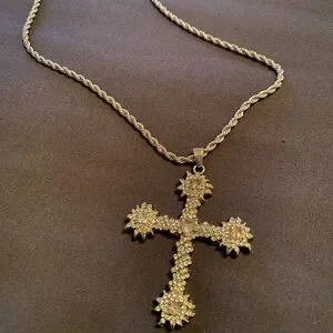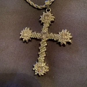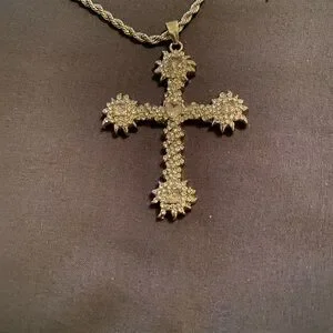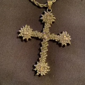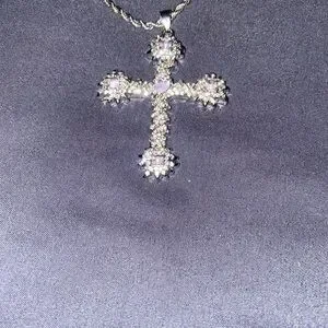 This stunning silver n pink cross pendant necklace adds a touch of elegance to any outfit. Perfect for any occasion.