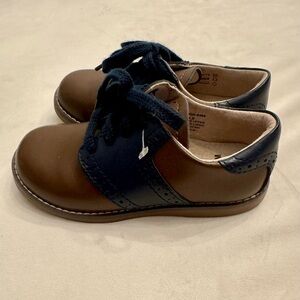 NWOB! Footmates Connor Classic Brown and Navy Saddle Shoes, sz 9 (Toddler)