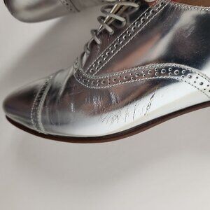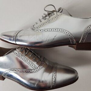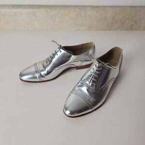 J.Crew made in Italy mirror metallic silver oxford leather shoes size 6.5 womens