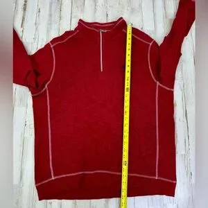 Men's Tommy Bahama Red Pull Over Marlin Logo 1/4 Zip Fleece Jacket XL