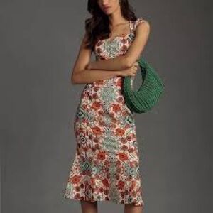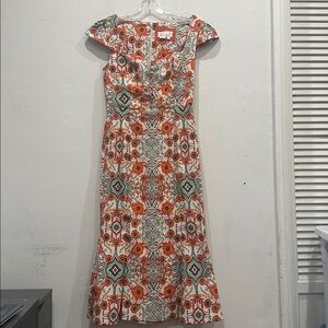 Anthropologie Cecily fit flare sweetheart neck floral orange midi dress small