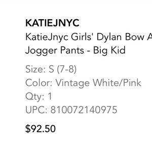 Chic jogger set with vintage white and pink hues. Features a bow accent. Like new condition. Worn once or twice at most. Outgrown so fast