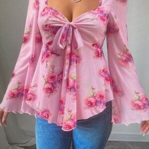 Embrace elegance with this floral pink women's top. Perfect for any occasion, this top adds a touch of femininity to your wardrobe.
