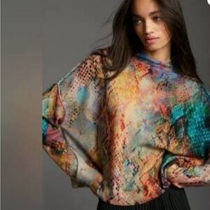 Pilcro Anthropologie The Alana’s multicolored cashmere mock neck sweater Large