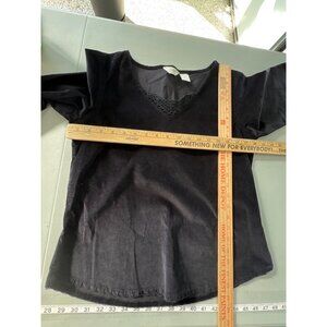 J Jill Top Size Small Stretch Corduroy Crochet Lace V-Neck Popover Career Preppy