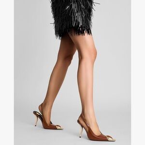 Elegant Slingback Design – Featuring a shiny sculptural heel and a bold gold-tone toe, these slingbacks add a touch of glamour to any outfit