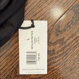 Deep plunge neck with seashell detailed necklace on top. Adjustable around the neck. One Piece. Size Large. Black. Never worn. brand new with tags