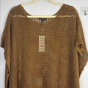 NEW Eileen Fisher Organic Linen Delave Bateau Neck Top Size 2X Boxy Fit Short Length Bronze Textural Crochet Stitch Airy Summer Beach Vacation Swim Coverup Resortwear Minimalist