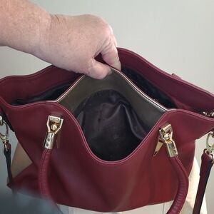 Foxer Italian Leather Deep Red/Gold Shoulder Crossbody Bag Purse Quality Elegant
