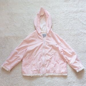 Keywords: vintage windbreaker, 90s jacket, pastel pink jacket, retro windbreaker, oversized vintage jacket, hooded zip jacket, vintage streetwear, 90s outerwear