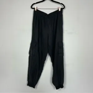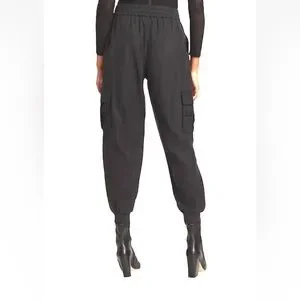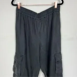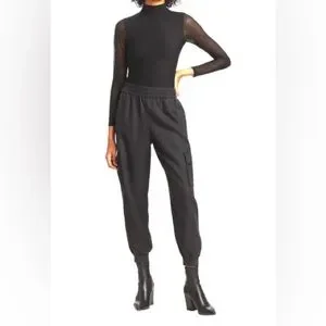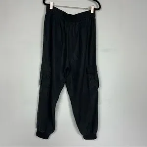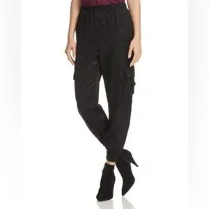ALICE + OLIVIA DEDE SMOCKED CARGO PANTS IN BLACK SIZE LARGE