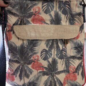 Caribbean Joe Flamingo Palm Print Crossbody Canvas Tropical Travel Bag