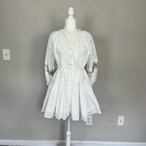 CLEOBELLA JADA TIERED MINI DRESS FLORAL EMBROIDERY WITH SLEEVES SIZE MEDIUM