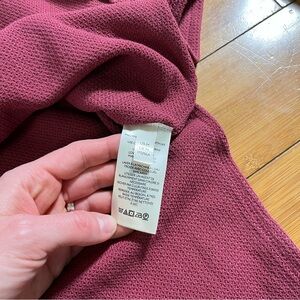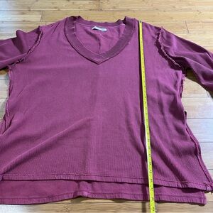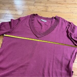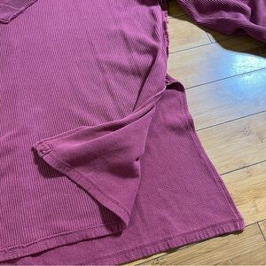 Stylish cranberry knit thermal sweater top by We The Free. Features a V-neck and ribbed texture.