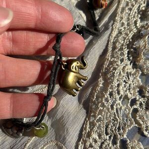 Charming Handmade Elephants & Birds Charm Necklace 30”