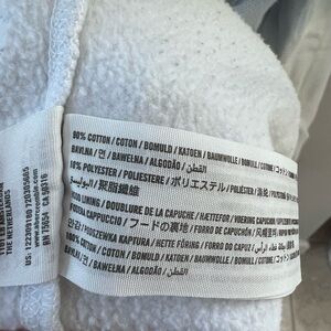 Cozy white sweatshirt with iconic logo patch. Perfect for casual wear.