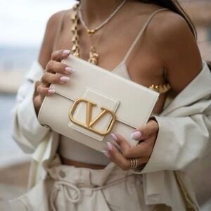 Valentino Garavani Stud Sign Shoulder Bag Light Ivory NIB