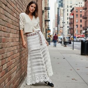 POL Openwork Boho Crochet Knit Scallop Maxi Skirt Butterfly Embroidered Belt