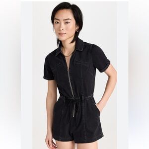 PAIGE Meg Short Sleeve Romper Black Denim Shorts Sz 2 Small