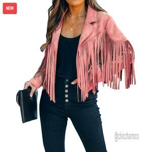 Faux Leather Moto Jacket Cropped Fringe Tassel Western Y2K Chic Lightweight