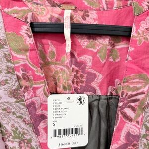 NWT Free People Pink Combo Printed Agnes Short Sleeve Mini V Neck Dress Womens