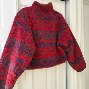 BlankNYC red multicolored Sherpa jacket quilted inside size small slight crop