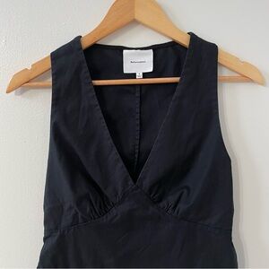 Chic black sleeveless top with a deep V-neck design. Flattering vneck cut with cute tie back