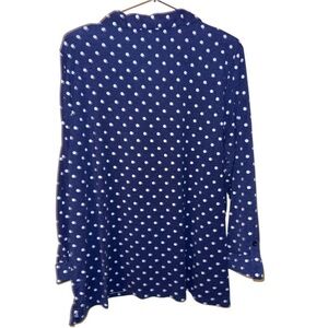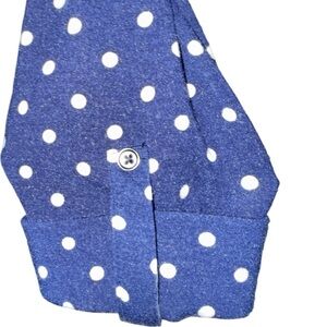 Stylish navy blouse with white polka dots. Features buttoned front pockets and a classic collar. ๐๐๐ซ๐ฒ ๐ฌ๐จ๐๐ญ & ๐ฉ๐ซ๐๐ญ๐ญ๐ฒ