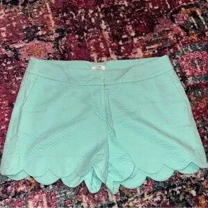 Size 6 (Petite) Crown & Ivy Teal Textured Scalloped Shorts 6P
