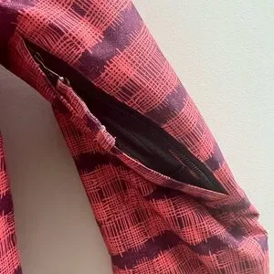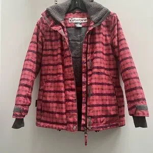 Has zippable front pockets and zippable pockets on the arms that are great for holding small items like a ski pass. Very warm snowboarding-style jacket that’s also great as a ski coat or simply as a winter coat!