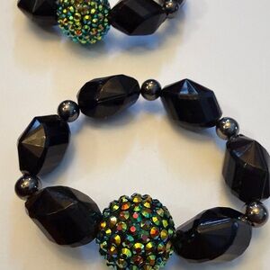 Elegant Black Beaded Bracelet Set of 2