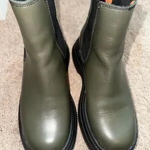 GANNI Olive Green Creepers Mid Chelsea Boots Size 6