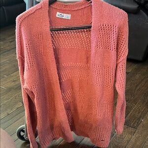 Chic open-front cardigan. Soft as butter knot textured. Ideal for layering. Really cute seams on shoulder and arms that Hollister is known for. Beautiful beautiful dark coral C404. This sweater is so nice.