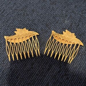 Enhance your hairstyle with these exquisite butterfly hair combs. Featuring a captivating blue and gold design, they add a touch of sophistication to any look.