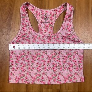 This stylish tank top features a vibrant pink hue and a fitted, sleeveless design that highlights its cropped length. Perfect for warm weather, the top is crafted from a stretchy material that ensures comfort and a flattering fit.