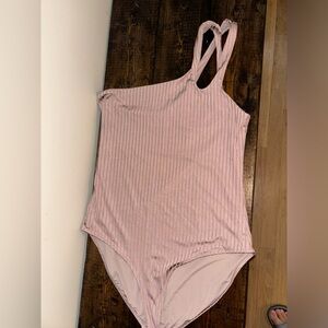Chic mauve ribbed one-piece swimsuit. Ideal for poolside lounging. Sunscreen marks on the inside liner, not visible from the outside, see photos
