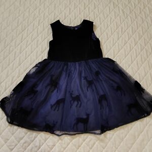 Cat & Jack navy blue velvet and tulle dress with a deer pattern