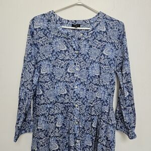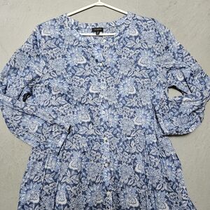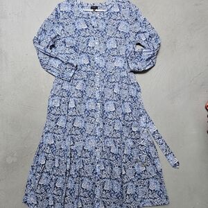 Talbots Sz 12 Cotton Voile Flowy Tiered dress Buoyant Blossoms Maxi Belt Dress