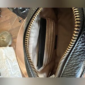Stylish leopard print crossbody bag with black accents. Perfect for adding a bold touch to any outfit.